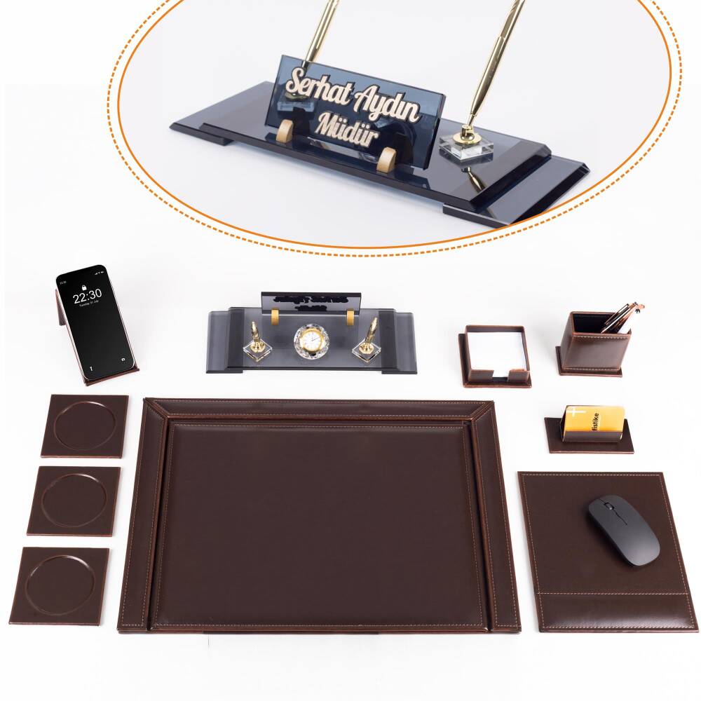 Ürün içeriğinde 24x12cm ebatında 8mm kalınlığında kristal, altın renk kalemli masa isimliği bulunmaktadır.