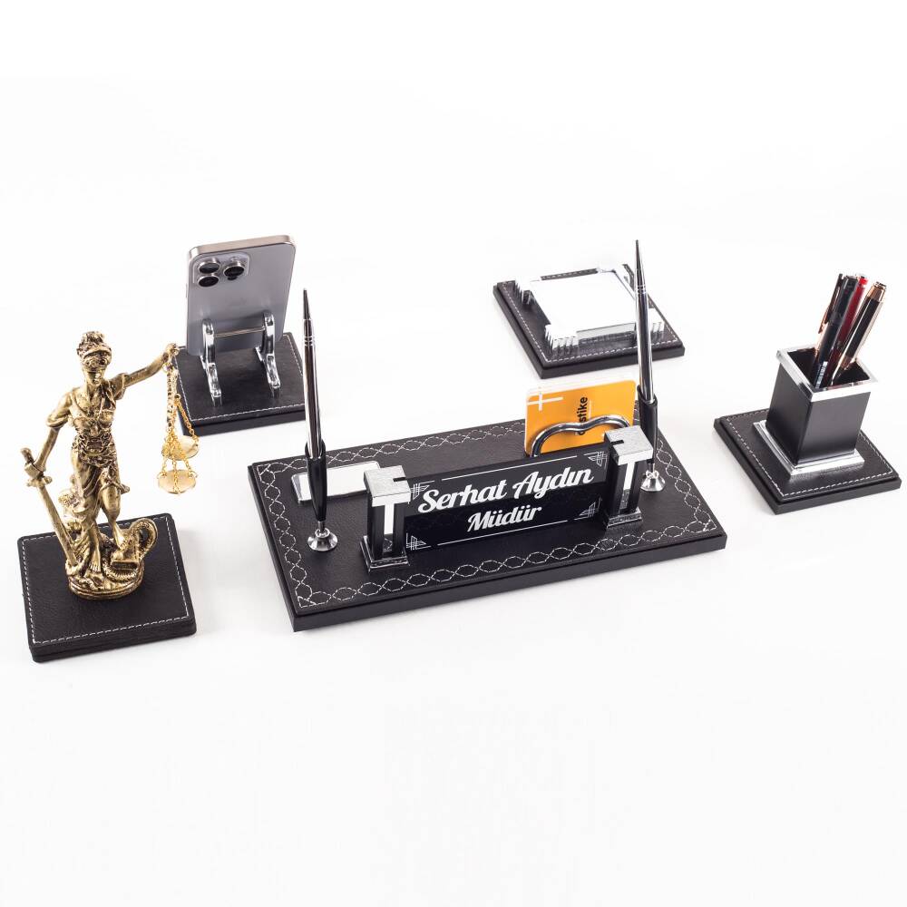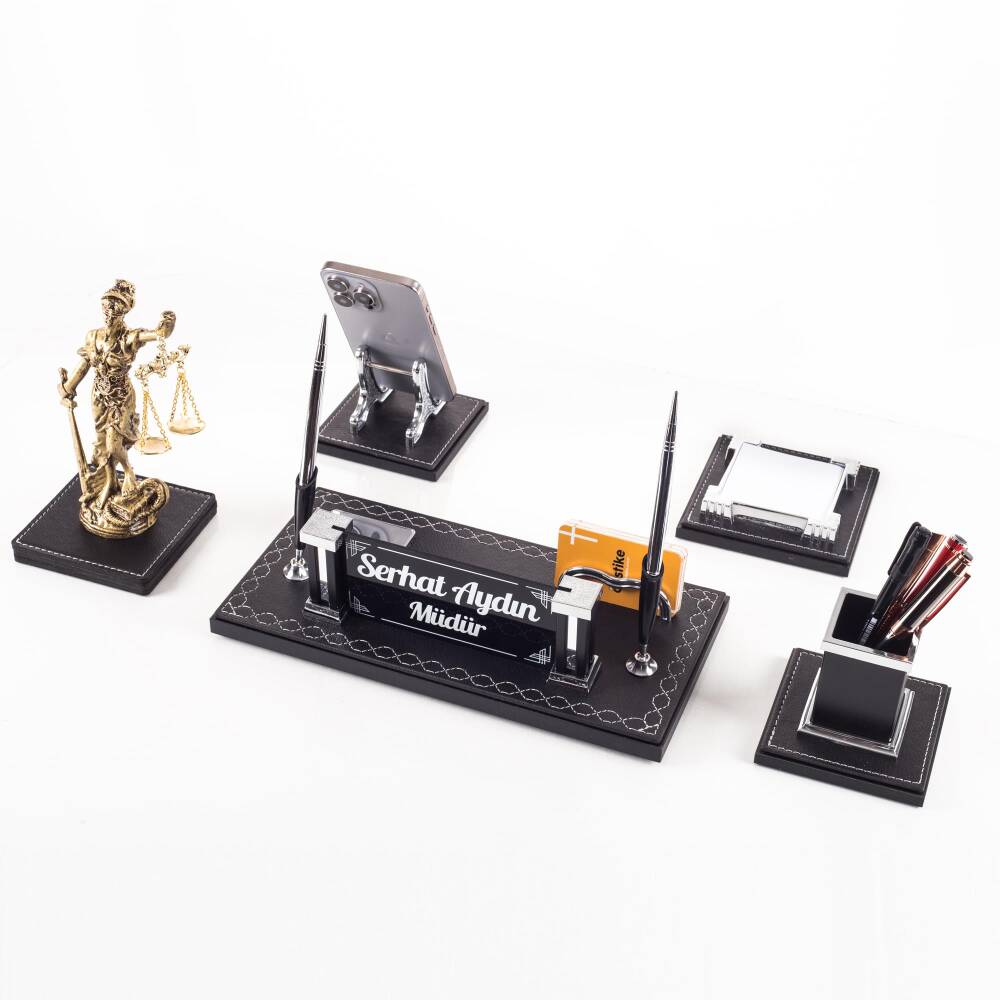 Set içerisinde yer alan kalemlik, notluk ve telefonluk alanları masanızı düzenlemede yardımcı olacaktır.