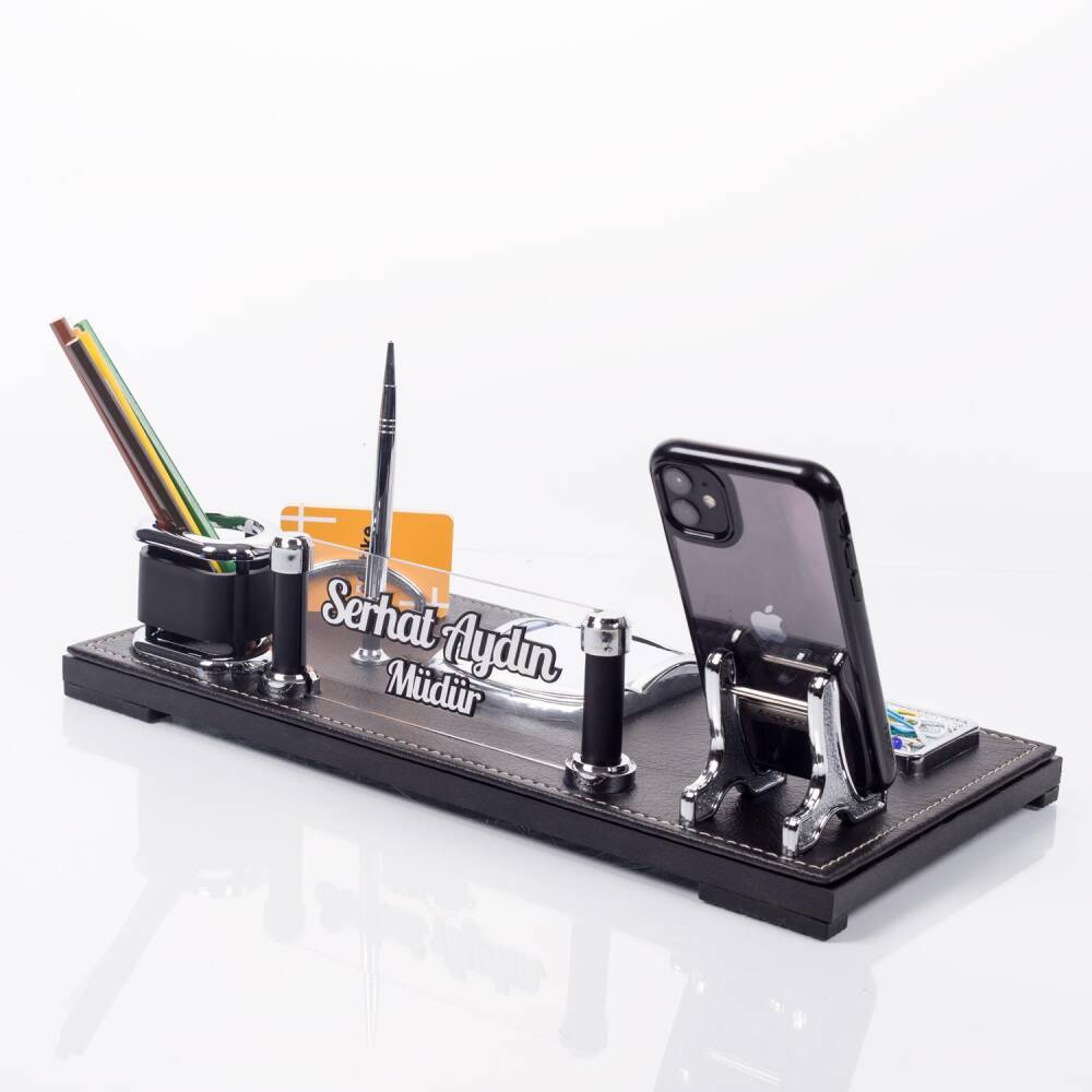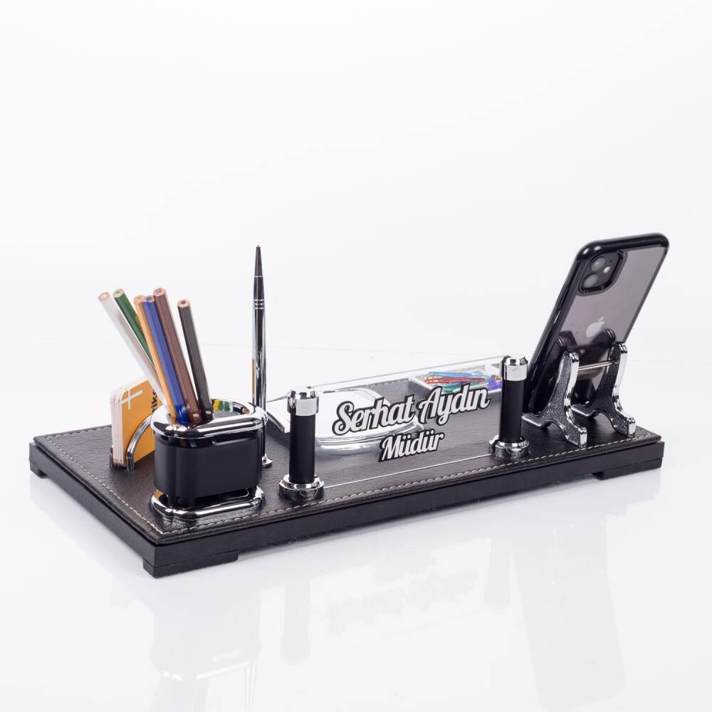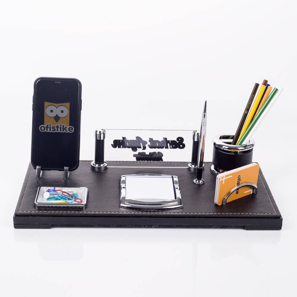 Masa organizeri üzerinde yer alan ataçlık, kalemlik, telefonluk, kartvizitlik ve not kağıtlık alanları masanızı düzenlemede yardımcı olacaktır.