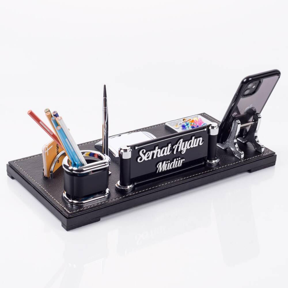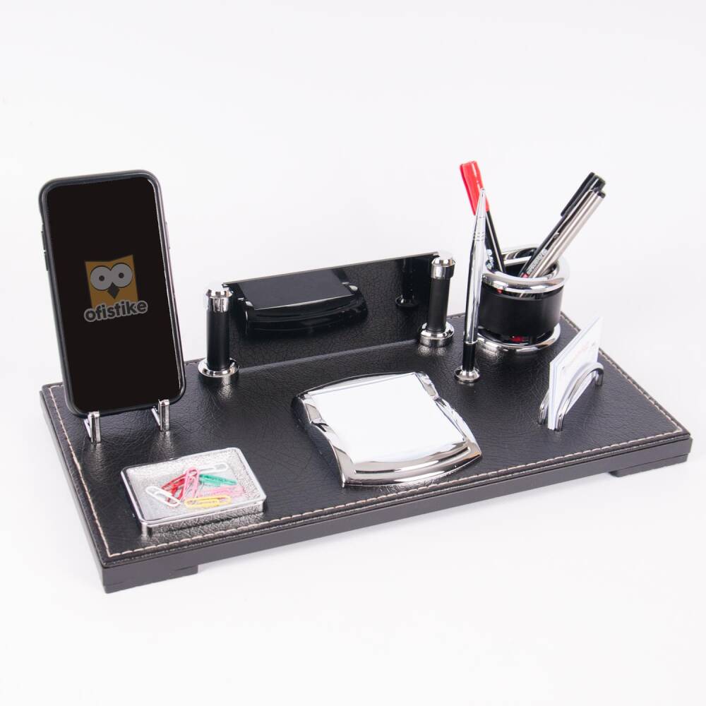 Masa organizeri üzerinde yer alan ataçlık, kalemlik, telefonluk, kartvizitlik ve not kağıtlık alanları masanızı düzenlemede yardımcı olacaktır.