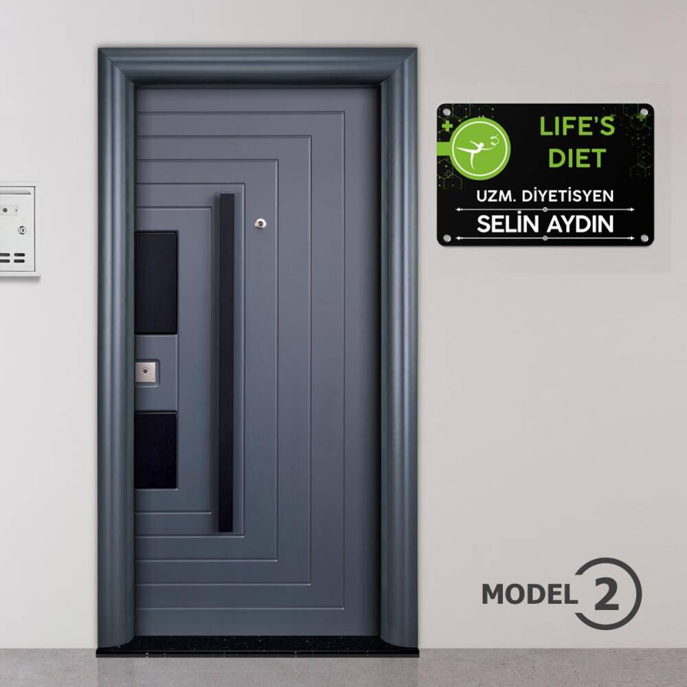 Diyetisyene Özel Siyah Kapı Tabela Büro Ofis Mini Giriş Tabelası