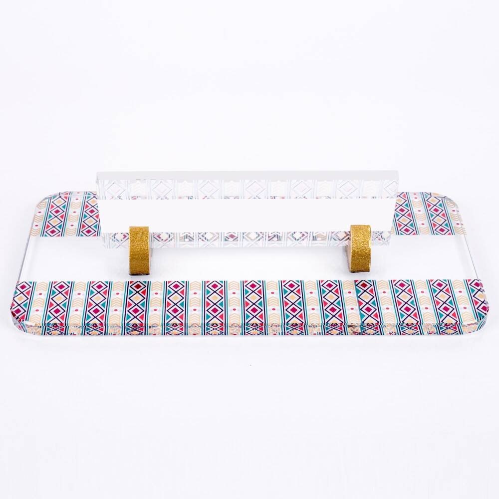 Ürün 30x12cm ebatında olup, 8 mm kristal cam üzerinde etnik desenli baskı yapılarak üretilmektedir.