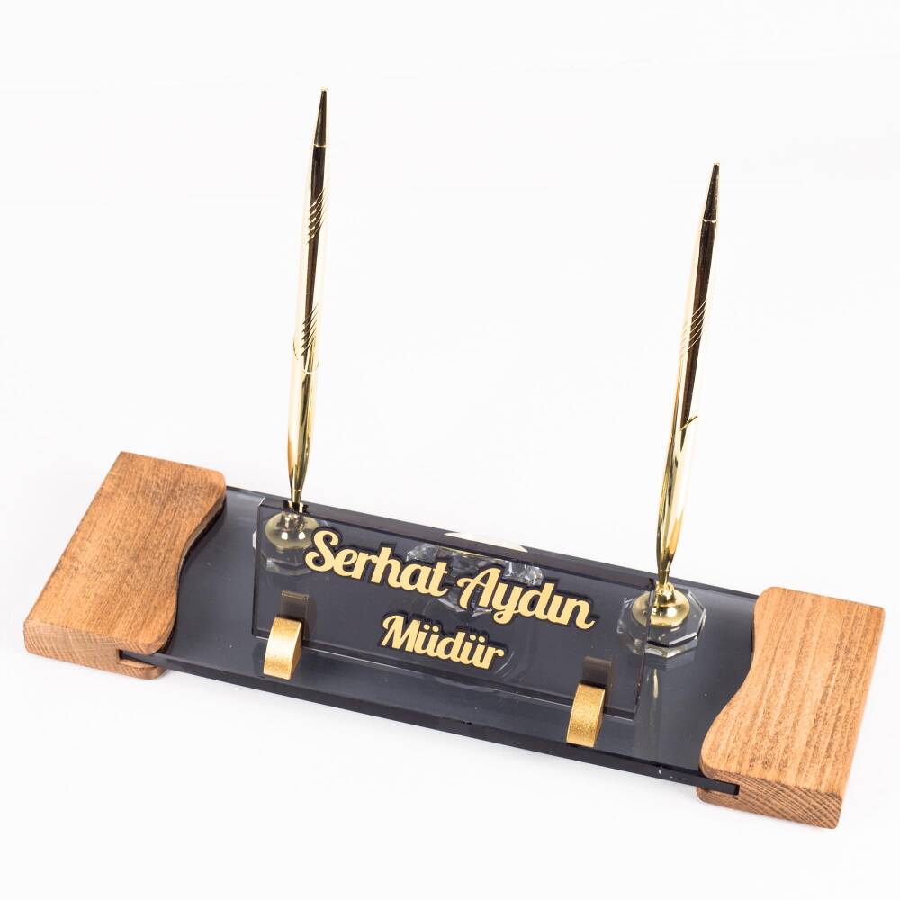 Kristal masa isimliği (çift kalemli, ahşap ayaklı)