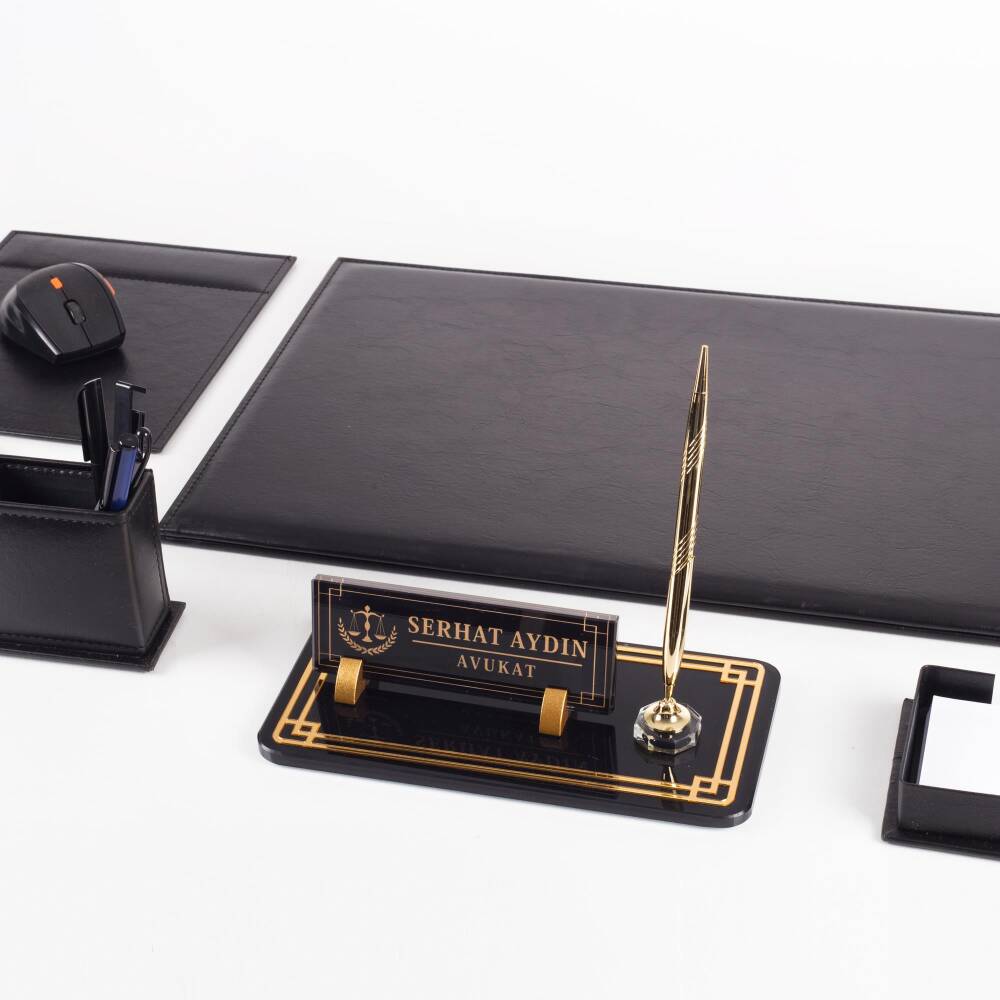 Ürün içeriğinde 30x12cm ebatında 8mm kalınlığında kristal, altın renk kalemli masa isimliği bulunmaktadır.