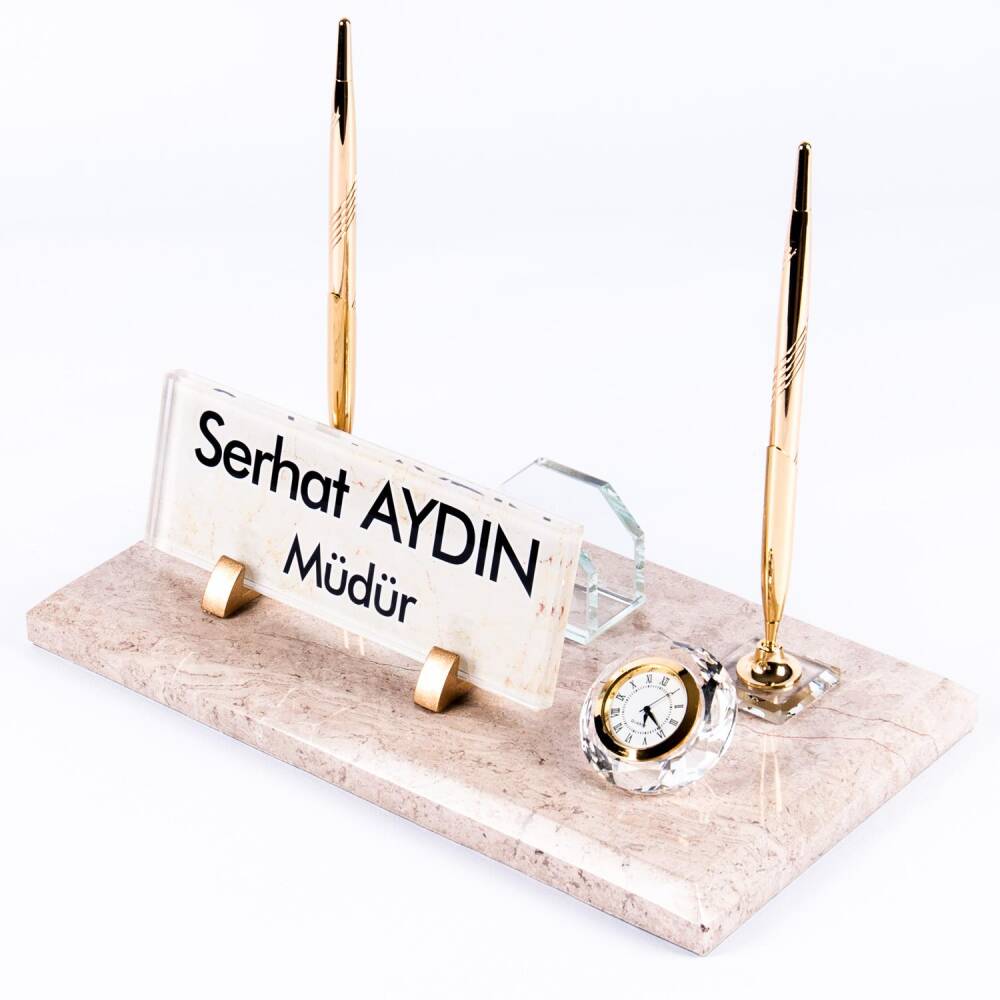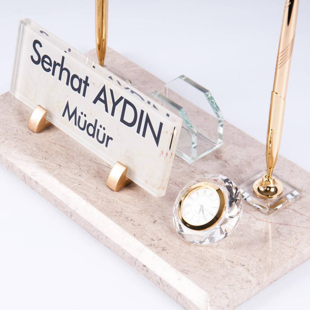 İsimlik bölümü 8mm kristal cam'dan üretilmekte olup, UV Baskı tekniği ile yazılmaktadır.