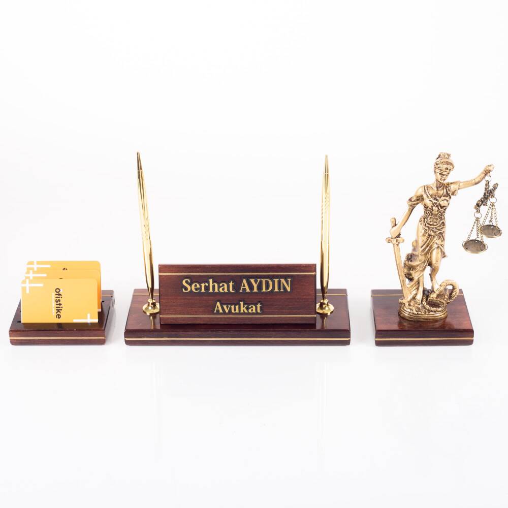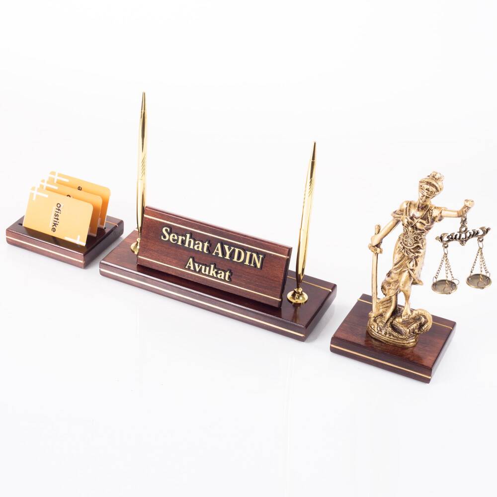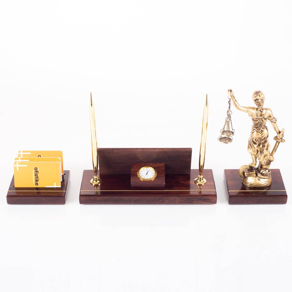 - Masa İsimliği üzerinde 2 adet kalem ve saat yer almaktadır. İsimliğin sağında heykel alanı ve sol kısmında kartvizitlik alanı bulunmaktadır.
