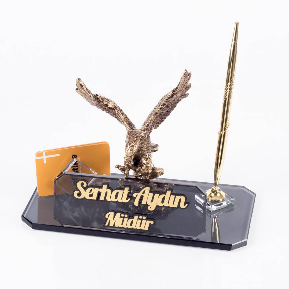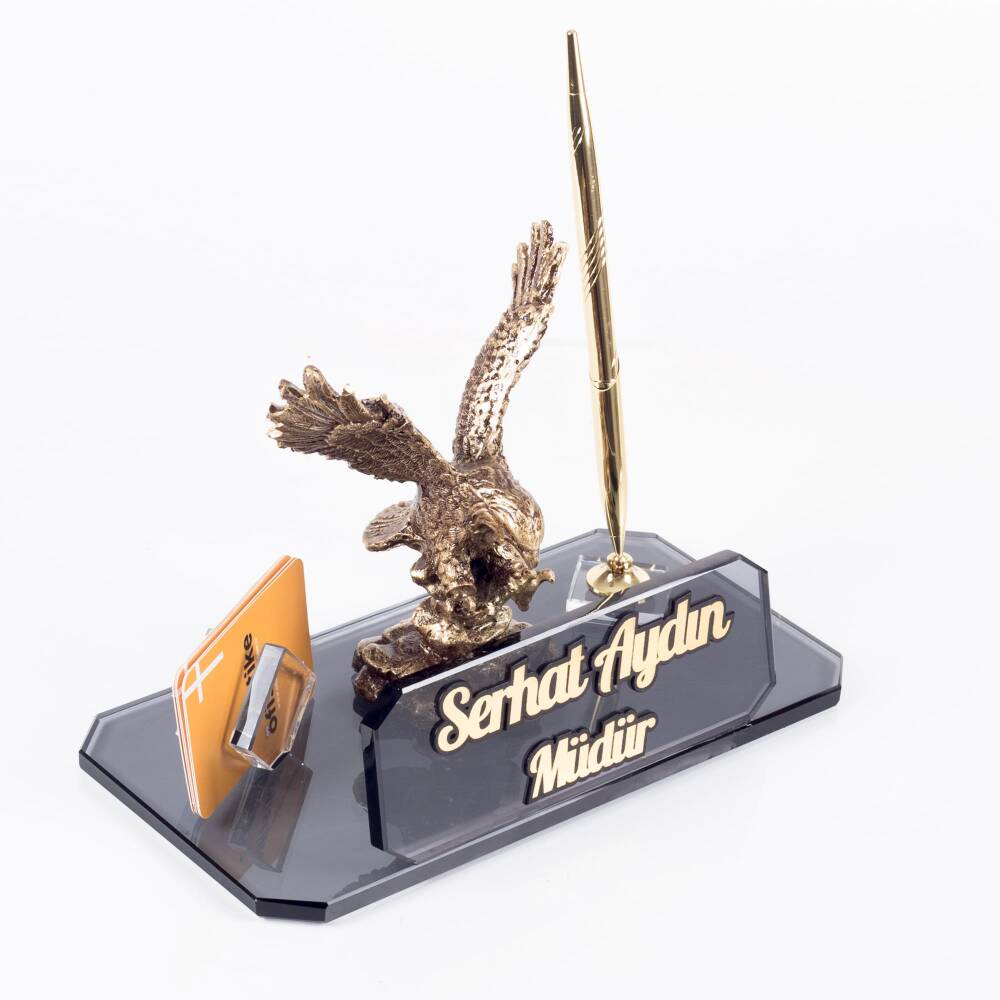 Ürün altın renk kartal biblosu ile gönderilmektedir. Biblo demonte olduğundan isimlik haricinde de kullanabilirsiniz.