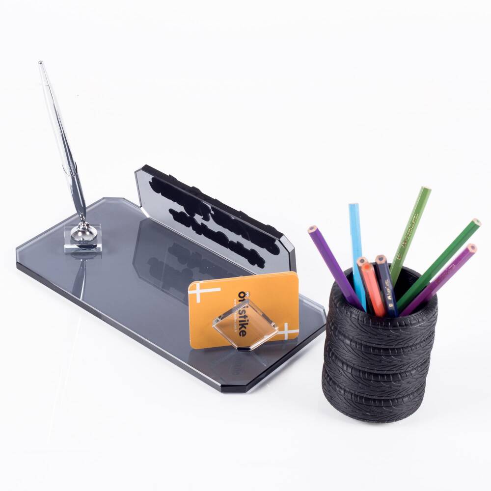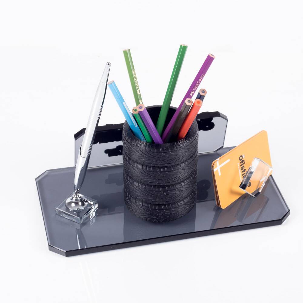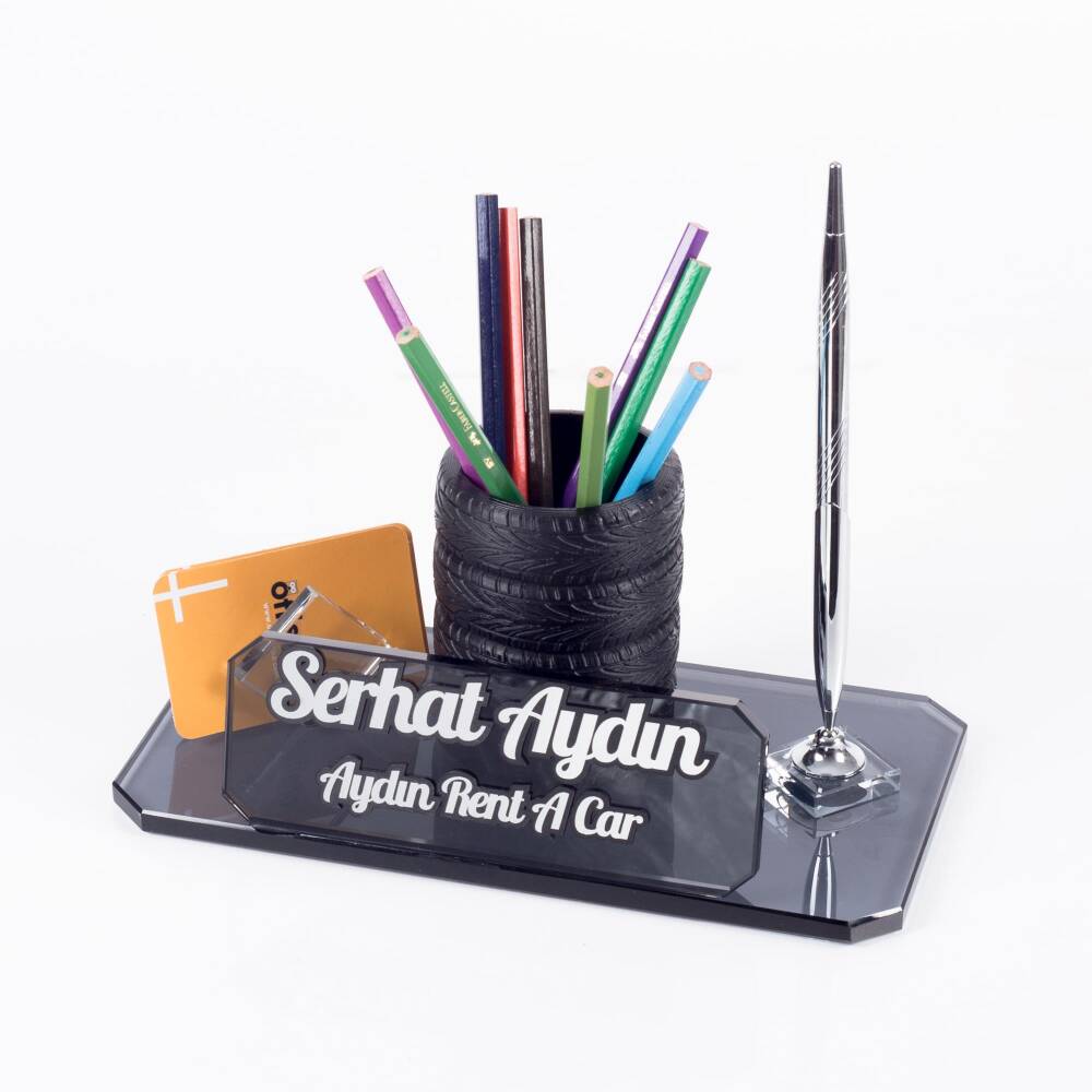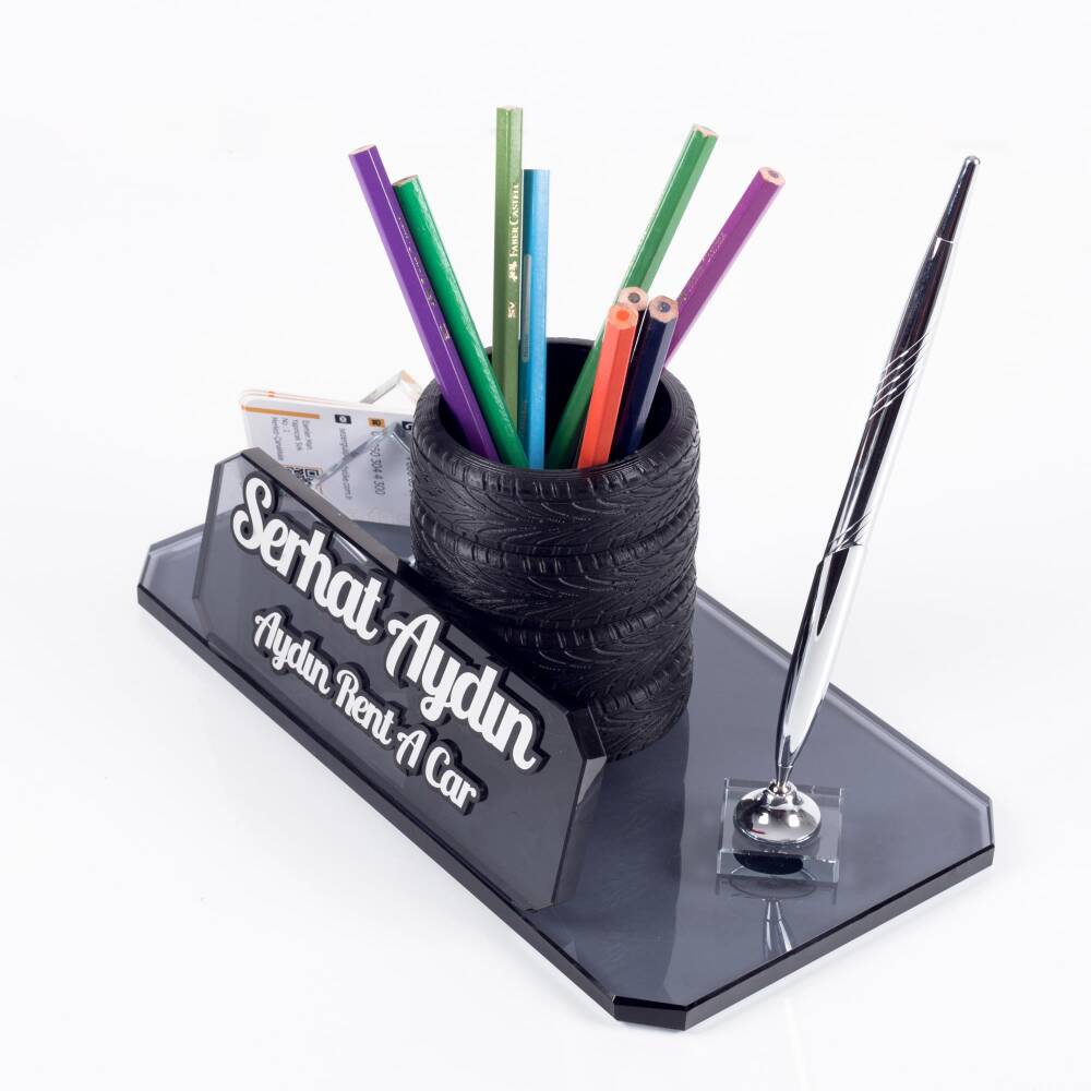 Ürün lastik figürlü kalemlik ile gönderilmektedir. Kalemlik demonte olduğundan isimlik haricinde de kullanabilirsiniz.