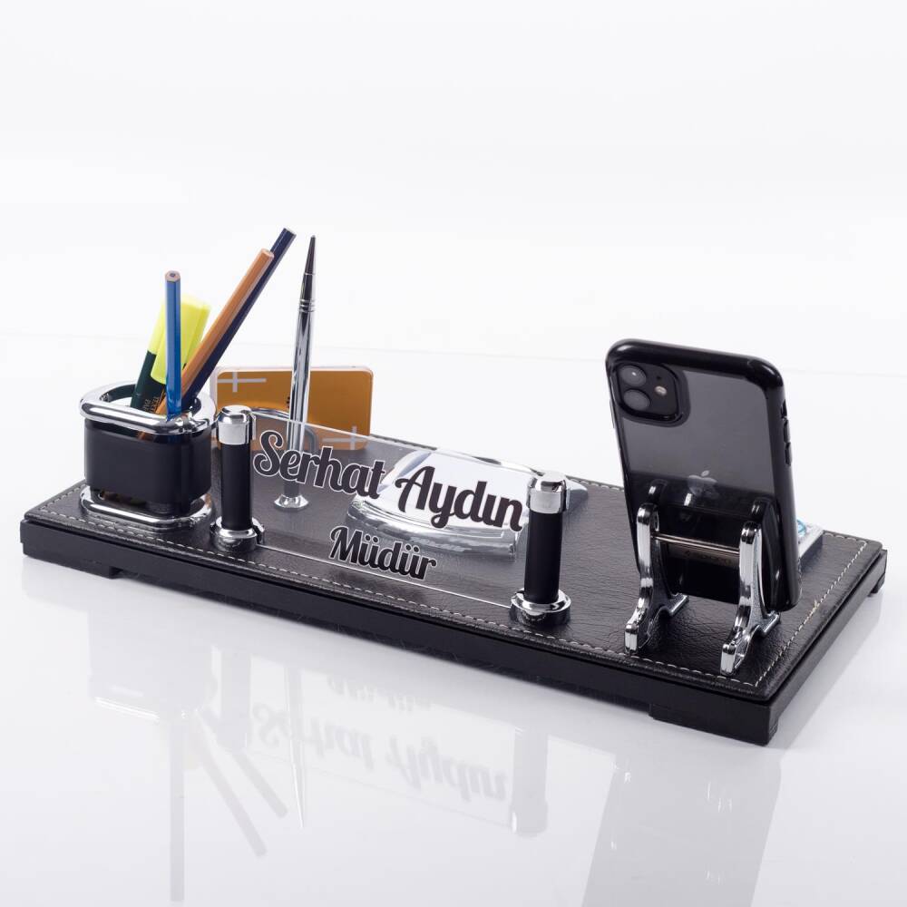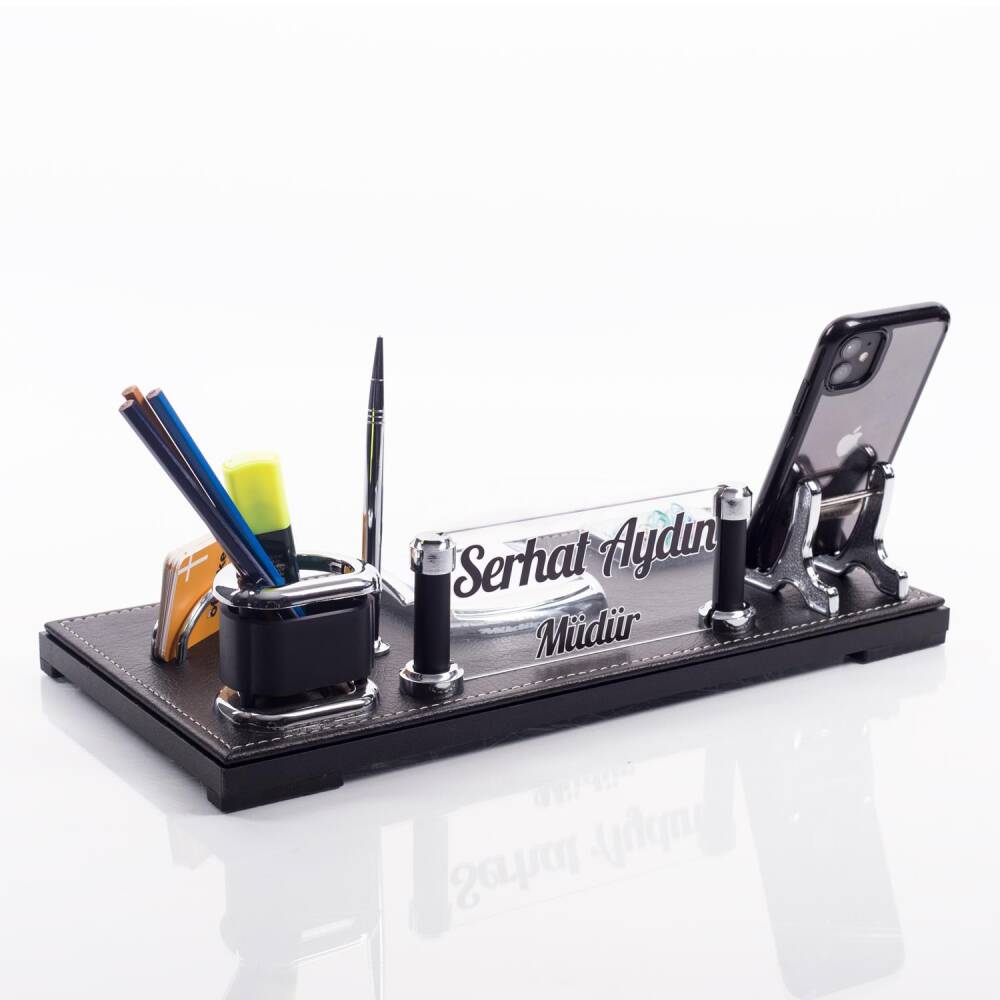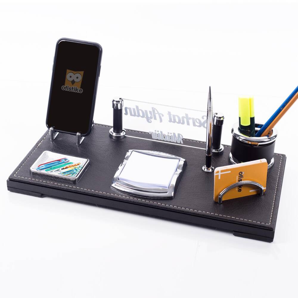 Masa organizeri üzerinde yer alan ataçlık, kalemlik, telefonluk, kartvizitlik ve not kağıtlık alanları masanızı düzenlemede yardımcı olacaktır.