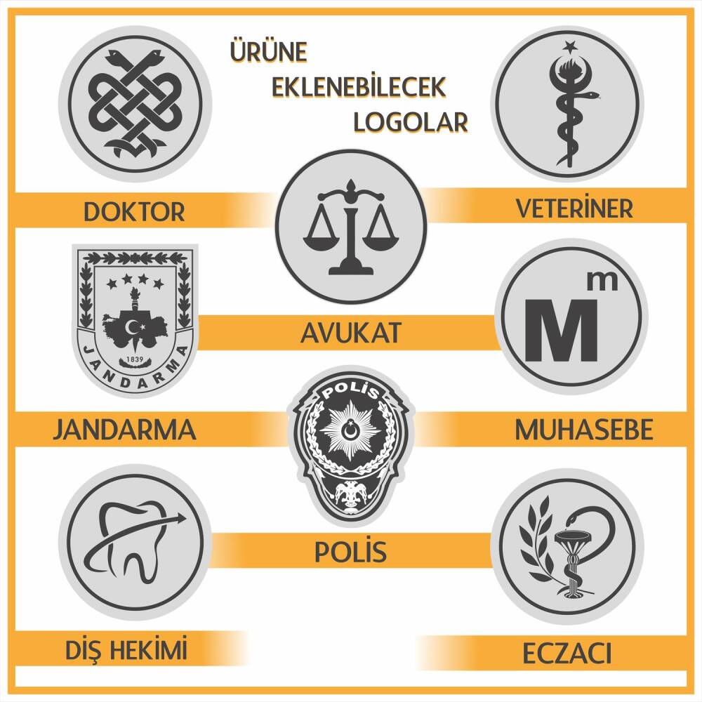 Tercih ettiğiniz meslek logosunu, yazılacak isim-ünvan alanında ya da sipariş sonrası mesaj yolu ile bize bildirebilirsiniz.