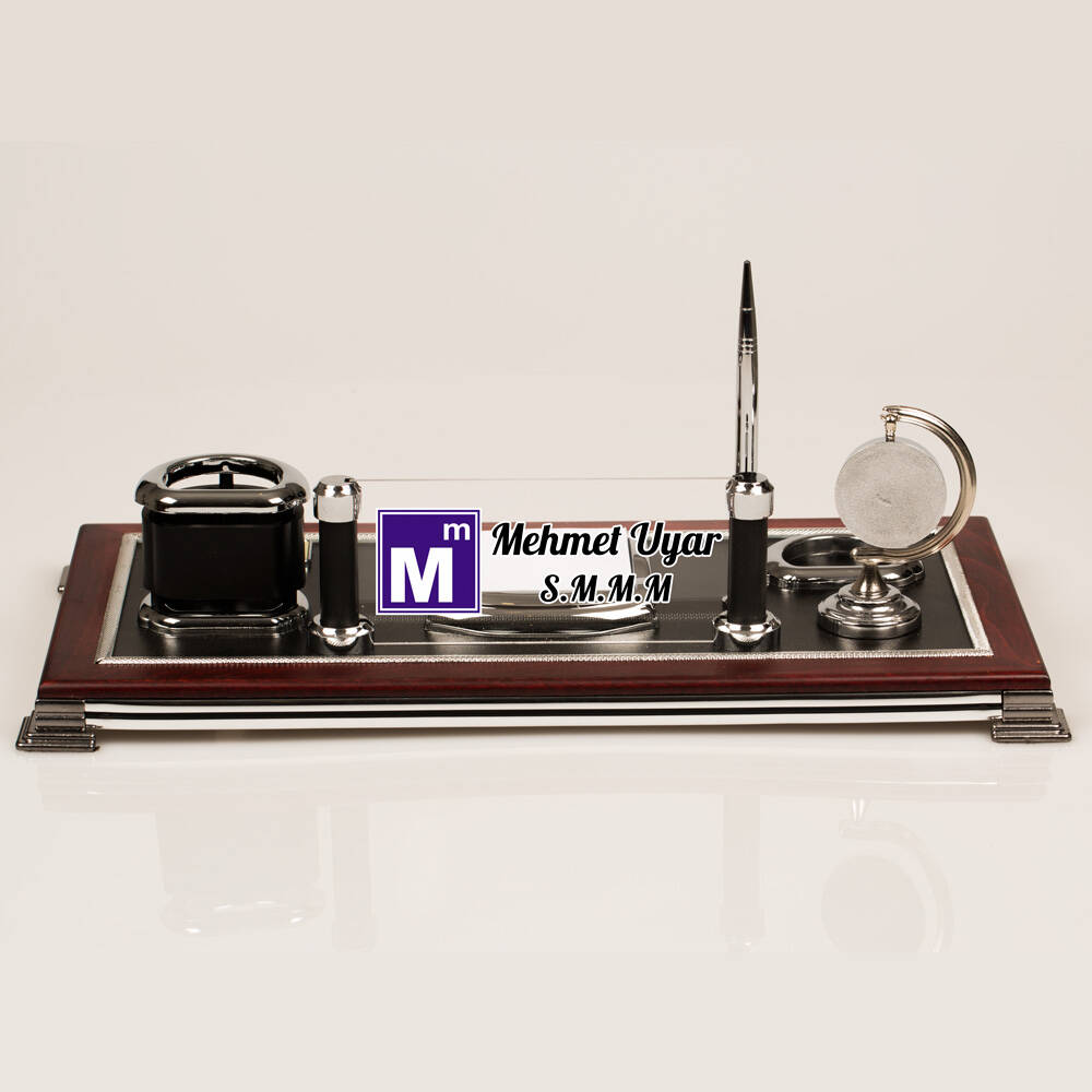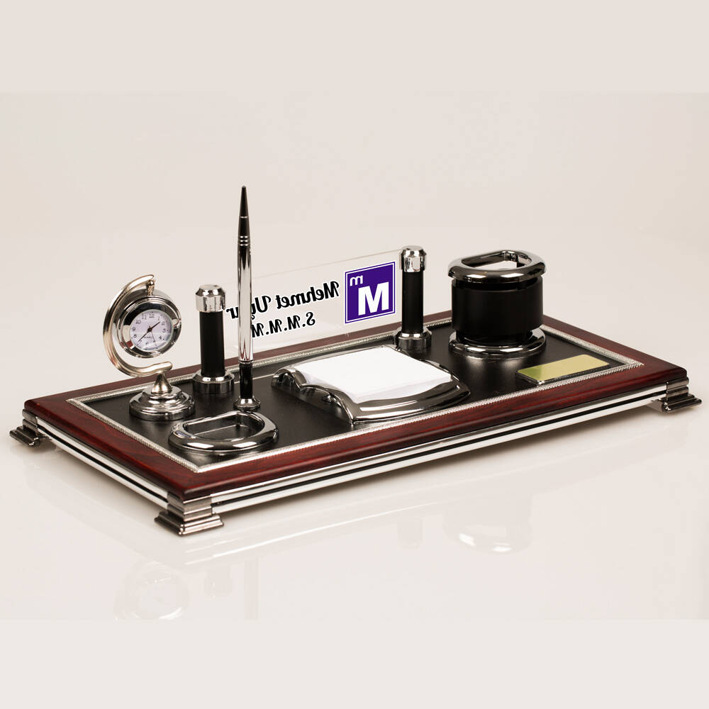Gelince Haber Ver1. Sınıf malzemeler ile üretilen bu şık masa üstü isimlik seti, şık detayları, kusursuz işçilik kalitesi ve aksesuarları ile masanıza şık bir görünüm katacaktır.Ürün üzerinde yer alan aksesuarlar aşağıdaki gibidir.