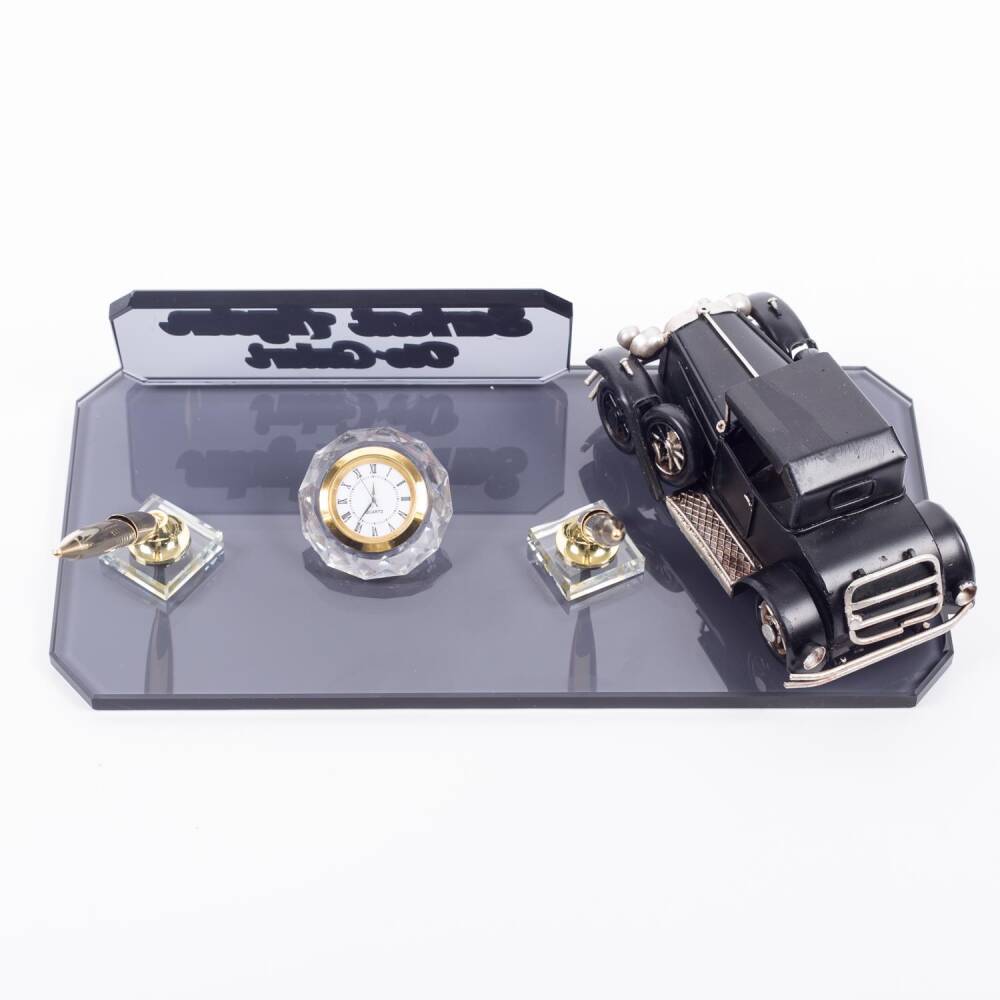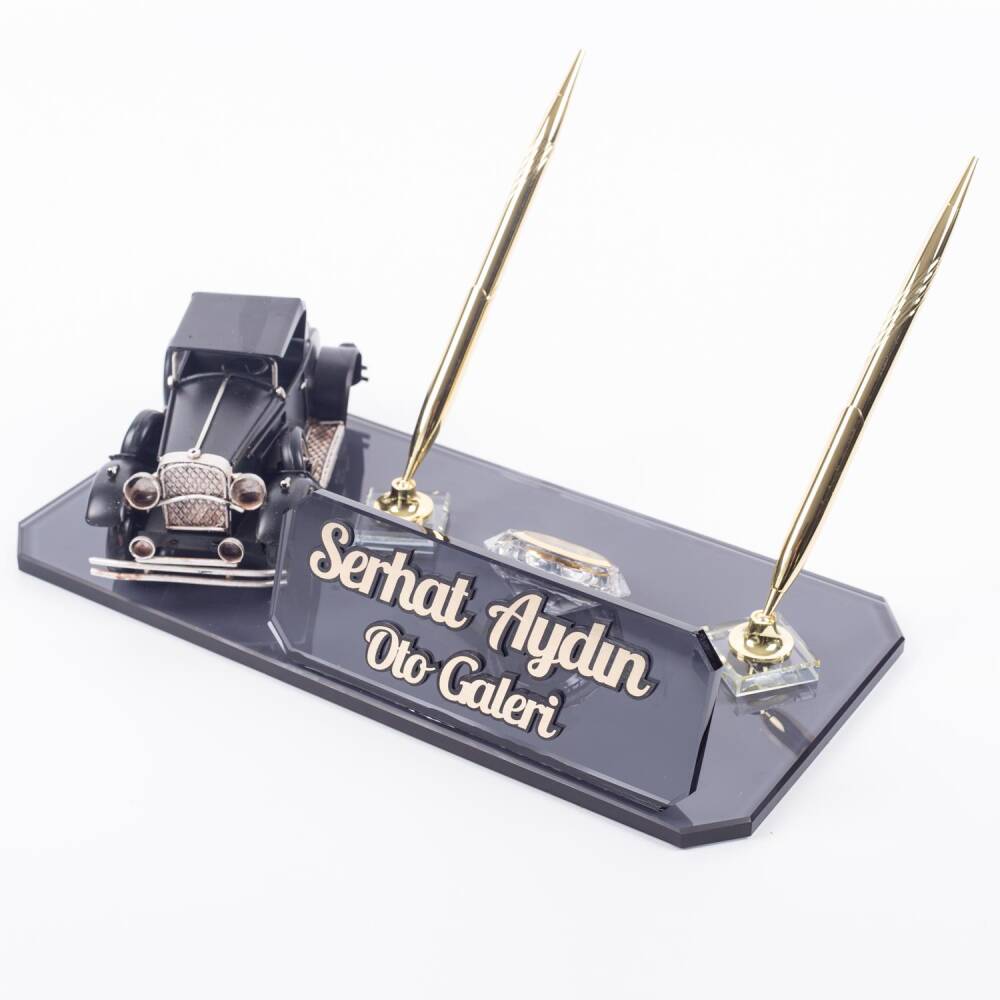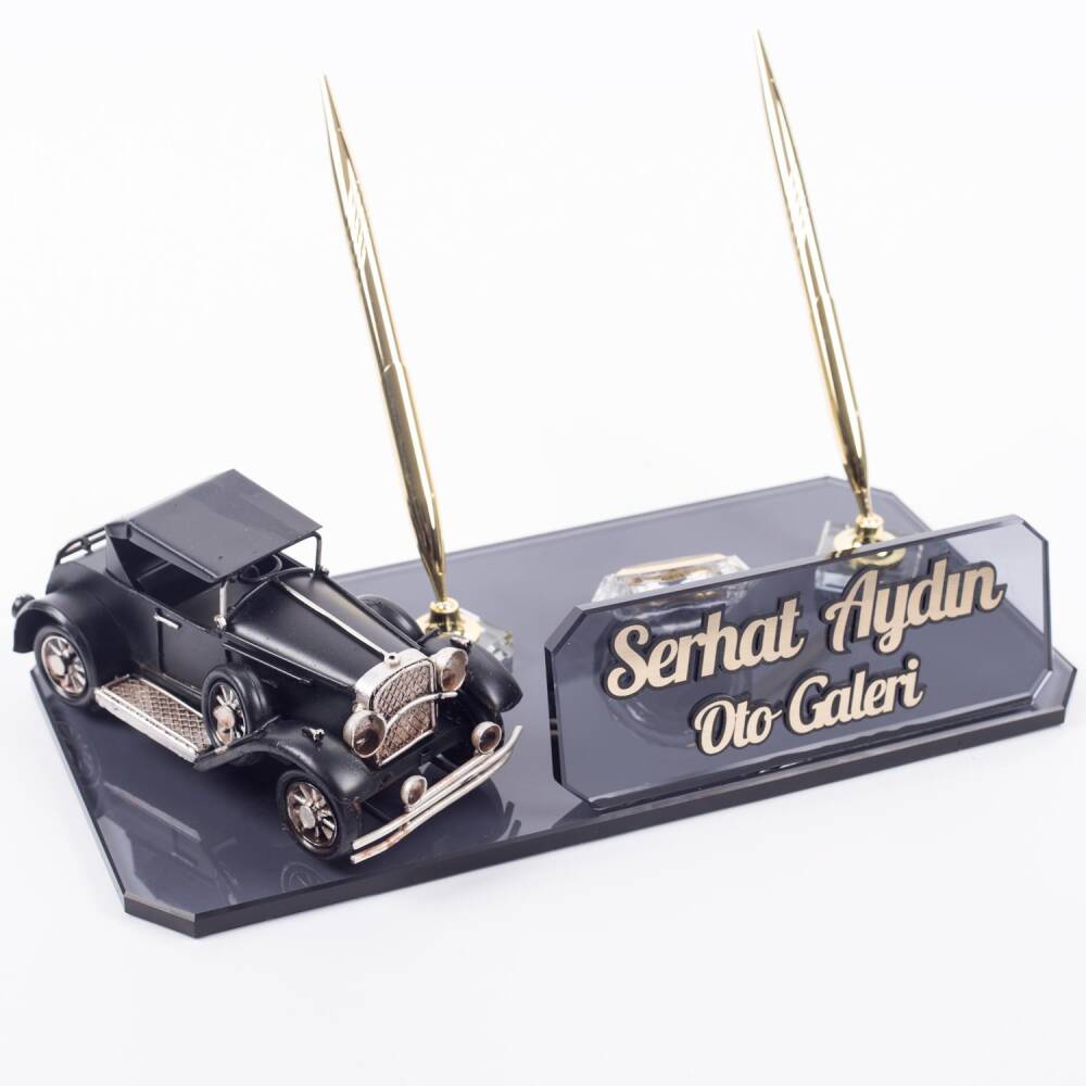 Nostalji Klasik Siyah Otomobil Araba Biblolu Kristal Masa İsimlik Otomobil Masa İsimliği