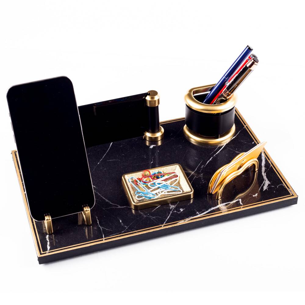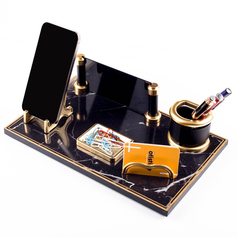 Masa organizeri üzerinde yer alan kalemlik, kartvizitlik, telefonluk ve ataçlık alanları masanızı düzenlemede yardımcı olacaktır.