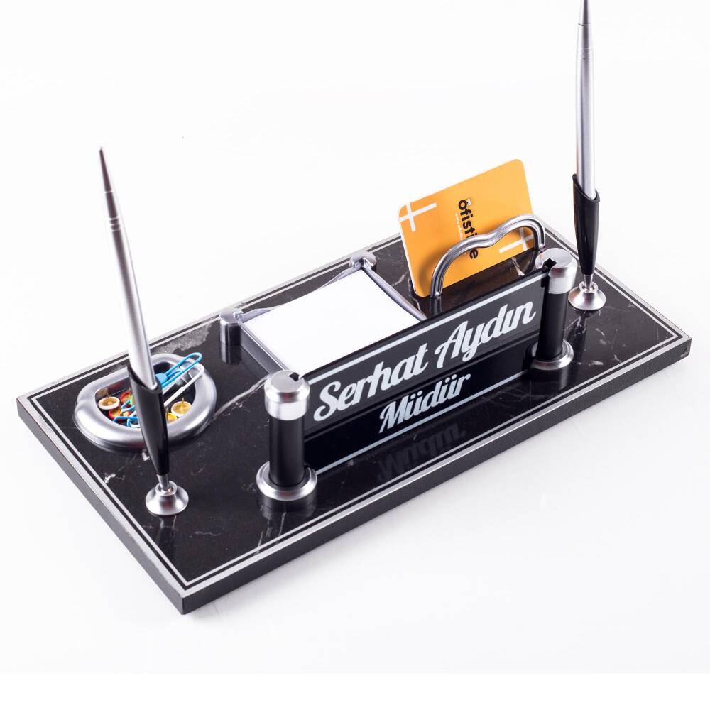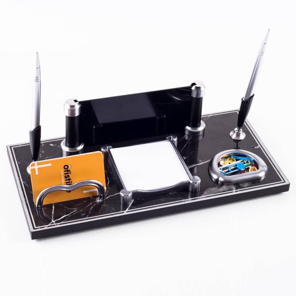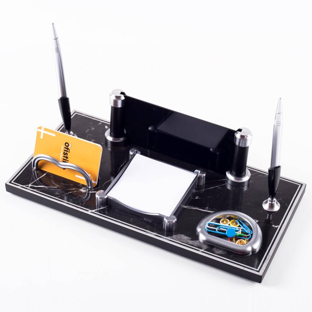 Masa organizeri üzerinde yer alan kartvizitlik, notluk ve ataçlık alanları masanızı düzenlemede yardımcı olacaktır.