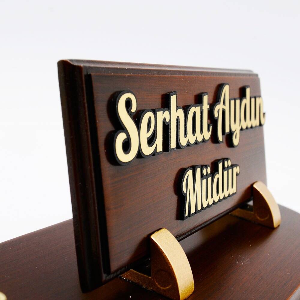 İsim yazılan alanın bulunduğu kısımda altın rengi 2 adet sabit ayak yer almaktadır.