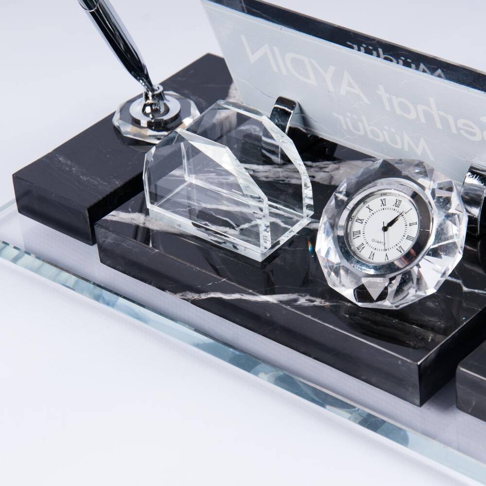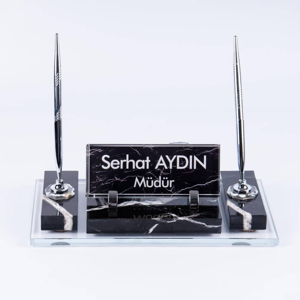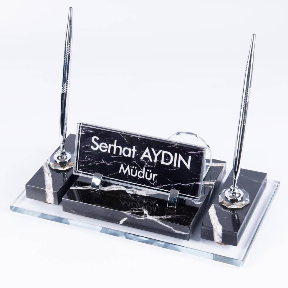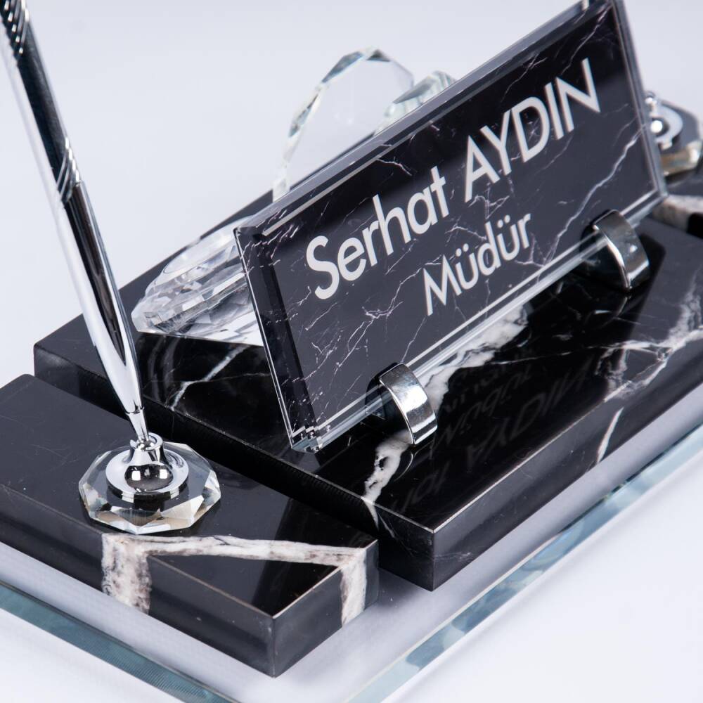 İsimlik bölümü 8mm kristal cam'dan üretilmekte olup, UV Baskı tekniği ile yazılmaktadır.
