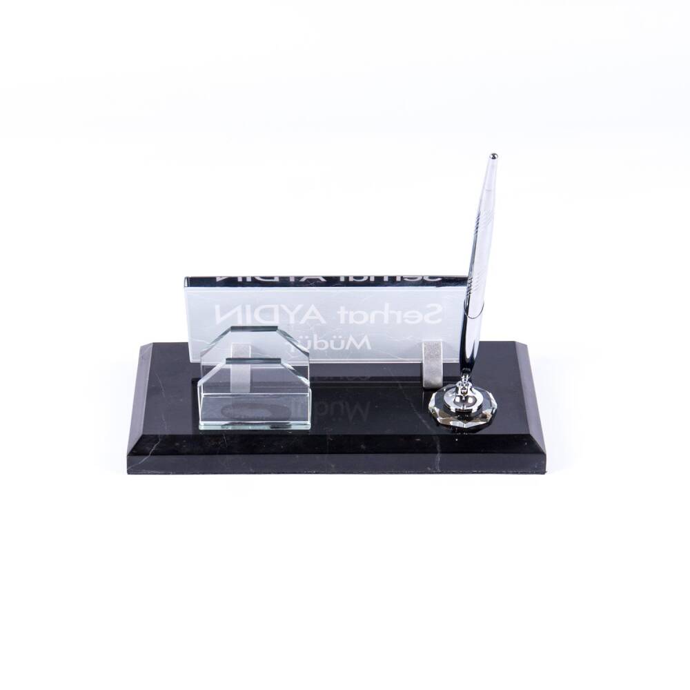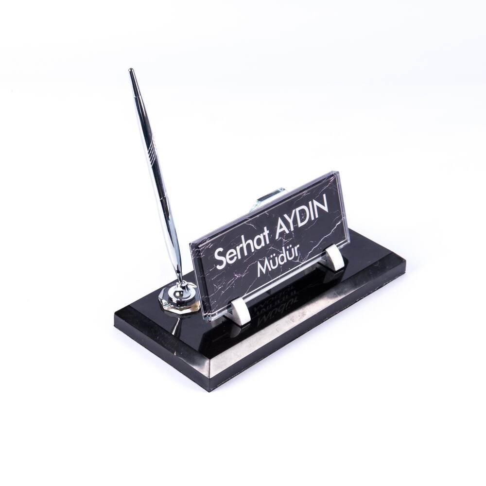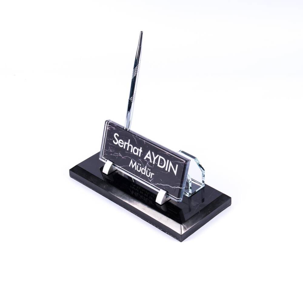 İsimlik bölümü 8mm kristal cam'dan üretilmekte olup, UV Baskı tekniği ile yazılmaktadır.